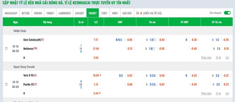 Đây là một tính năng mà mình đánh giá là cực kỳ thông minh. Bongdainfo cho phép anh em so sánh tỷ lệ kèo giữa nhiều nhà cái lớn như Bet365, 188BET, MacauSlot, EasyBet Crown,…