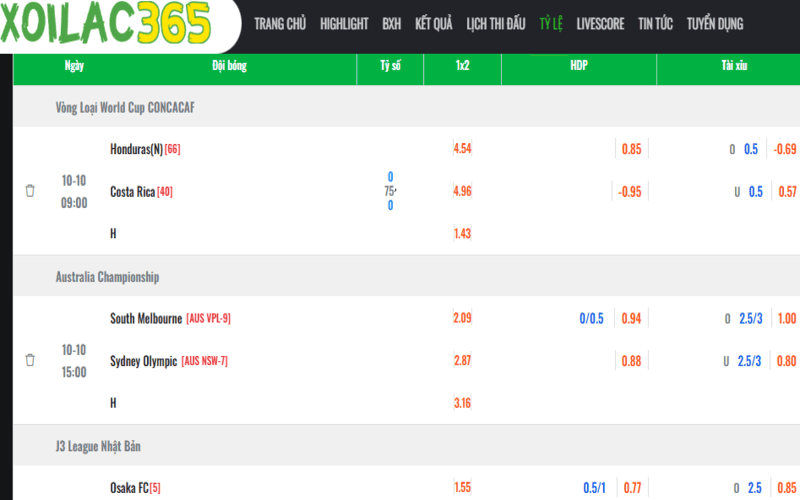 Không chỉ cung cấp tỷ lệ cược chính, Xoilac TV còn hiển thị rõ ràng các mốc Tài Xỉu khác nhau (Tài Xỉu cả trận, Tài Xỉu hiệp 1,…) cùng với sự thay đổi của chúng theo thời gian. Đây là cơ sở vững chắc cho những ai muốn đánh giá khả năng bùng nổ bàn thắng của trận đấu.